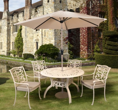 Check Here for Customer Reviews and Buy with Special Price Cast Ornamental 4 Seater Round Sandstone with Taupe Cushion set including Parasol and Base by Norfolk Leisure